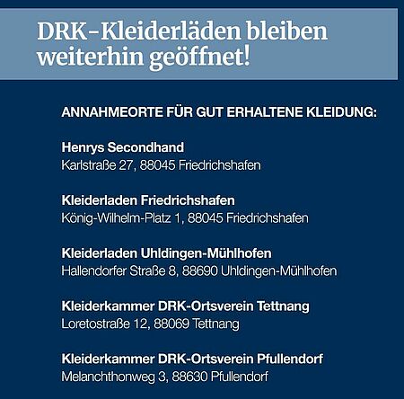 Unsere DRK-Kleiderläden bleiben weiterhin geöffnet!